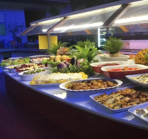 Tutti i giorni, il menu propone 30 tipi di antipasti a buffet, come caponata di melanzane, parmigiana, zucchine e melanzane gratinate al forno e tante altre bontà, 5 primi freschi saltati al momento, 5 secondi di carne e pesce fresco ogni giorno per soddisfare i gusti di tutti, abbinati a 5 contorni o preparazioni con verdure freschissime. Lasciati incuriosire dalle proposte di oggi, delizia il tuo palato assaggiando anche gli squisiti dolci preparati dallo chef esperto!